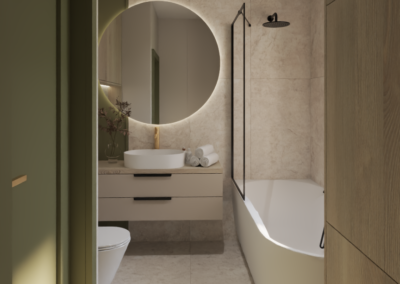 Wybierając standard srebrny, otrzymujesz solidne, funkcjonalne wnętrze wykonane z trwałych materiałów. Ściany są malowane na neutralne kolory, a na podłogach zastosowane są panele laminowane lub płytki ceramiczne o prostej fakturze. Wyposażenie kuchni i łazienki obejmuje standardowy sprzęt AGD oraz podstawowe meble, zapewniając wszystko, co niezbędne do codziennego użytkowania. To doskonała opcja dla osób poszukujących przystępnego rozwiązania, które łączy w sobie funkcjonalność i estetykę.